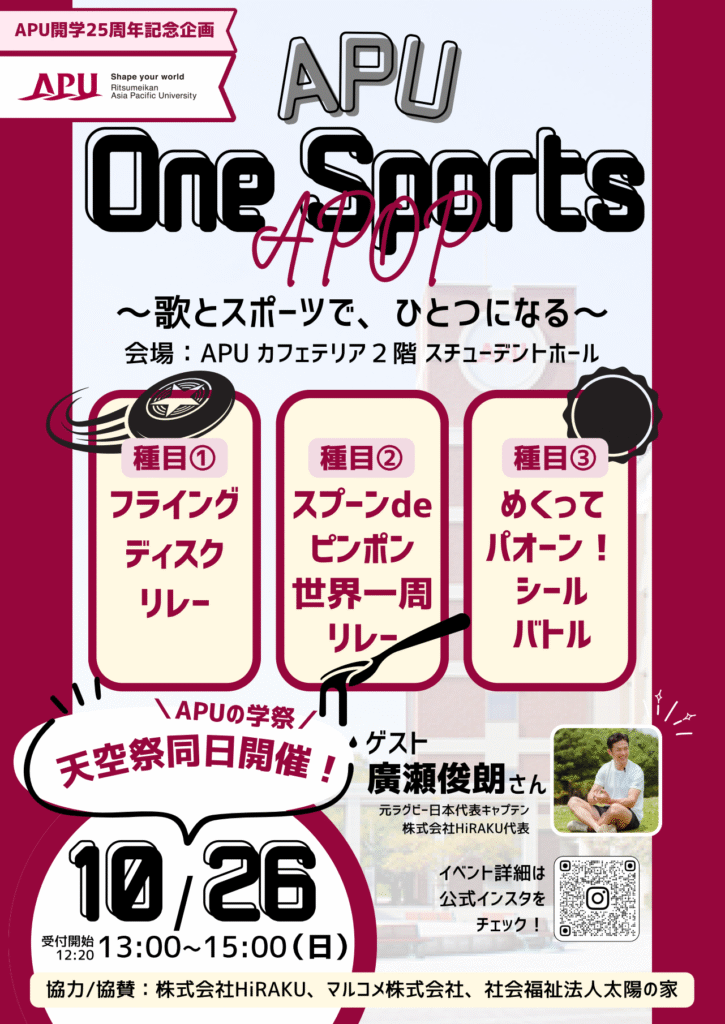 [イベント]APU ONE SPORTS:APU開学25周年記念企画で元日本代表の廣瀬俊朗さんがゲスト出演します。