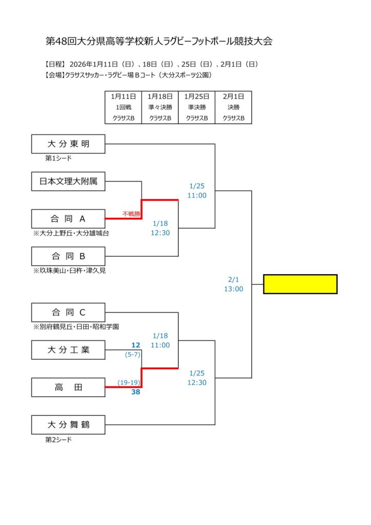 [高校]第48回大分県高等学校新人ラグビーフットボール大会:1回戦の結果