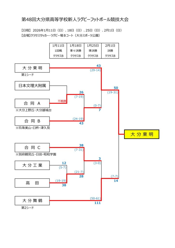 [高校]第48回大分県高等学校新人ラグビーフットボール大会:決勝の結果
