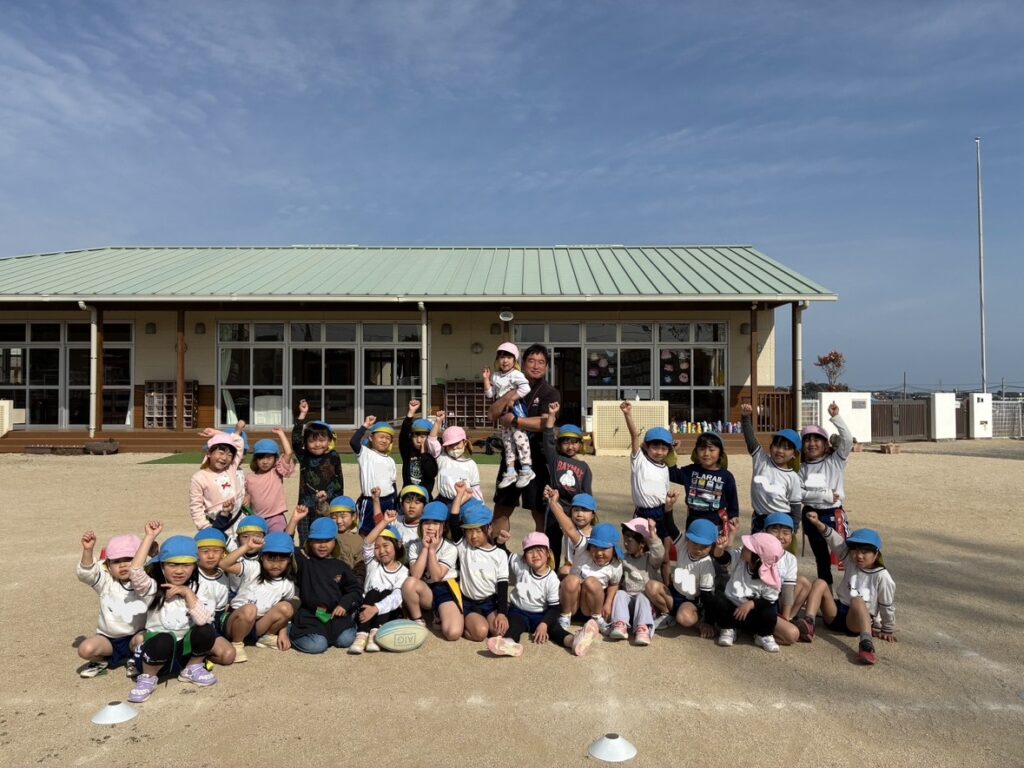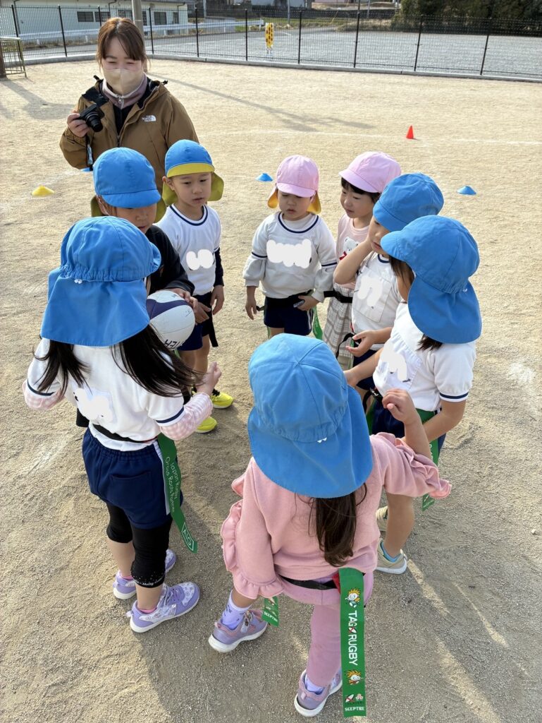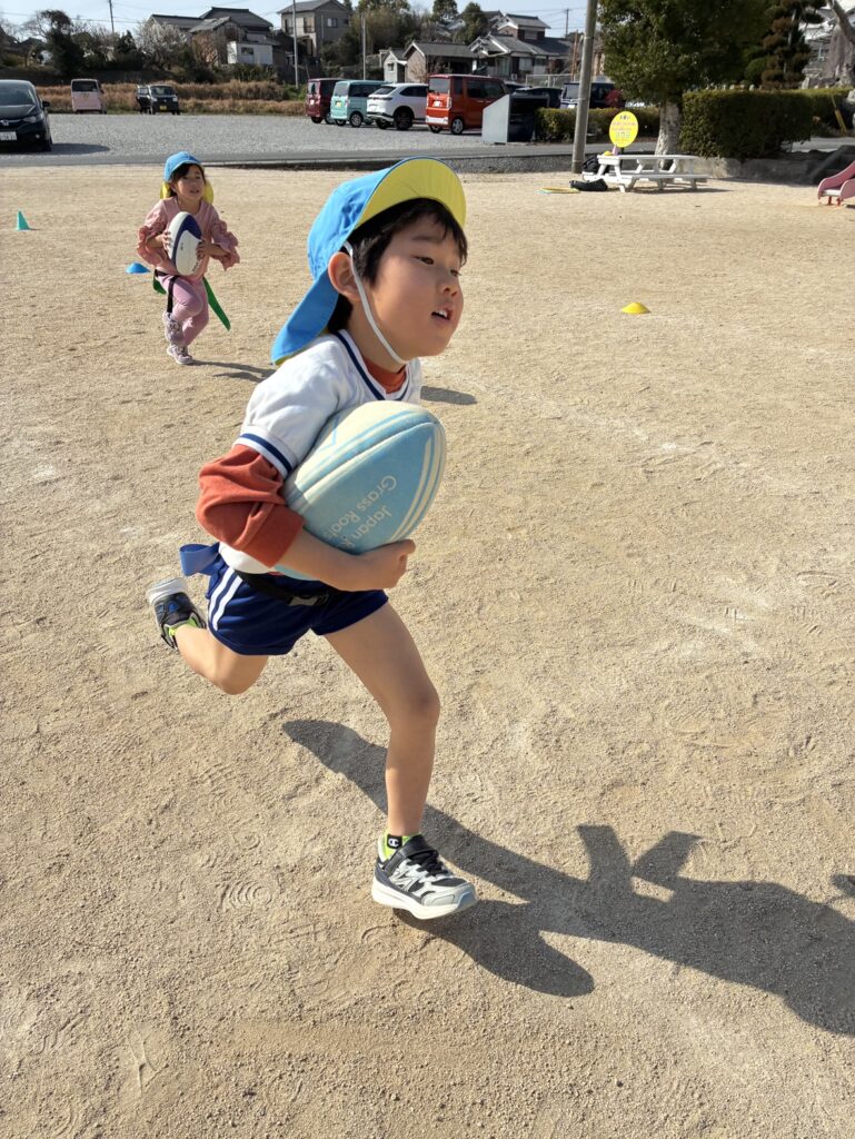 また、キャプテン役の園児がチームをしっかりまとめ、声出しや応援を自主的に行う姿も印象的でした。仲間を励まし合う姿勢は、まさにラグビーの精神そのものです。