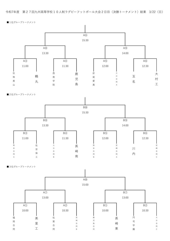 [高校]第27回九州高等学校10人制大会:決勝トーナメント組み合わせ 高校 2026.03.21 第27回九州高等学校10人制大会2日目の組み合わせが決まりました。>>第27回九州高等学校10人制大会決勝トーナメント組み合わせ(PDF)